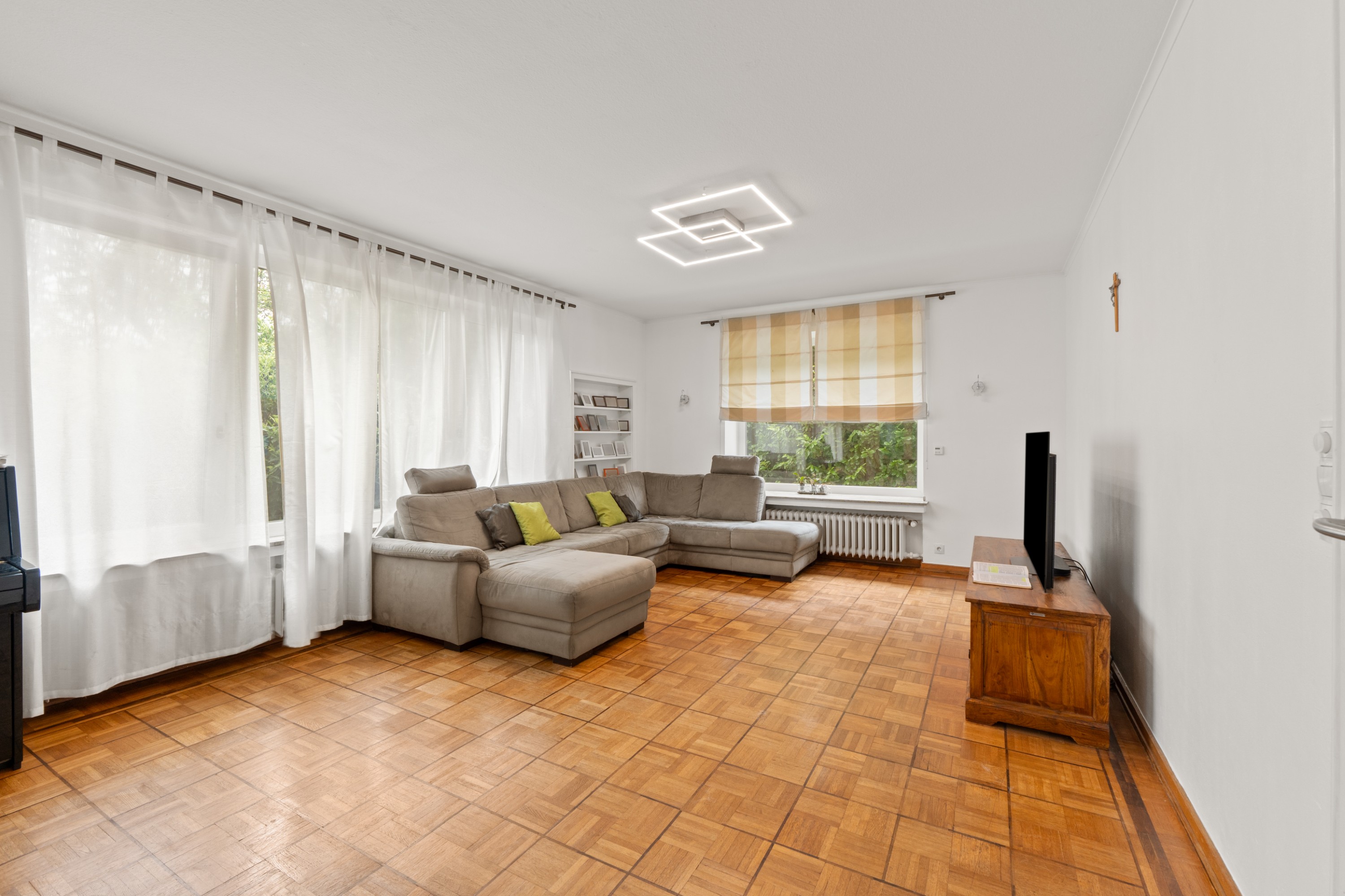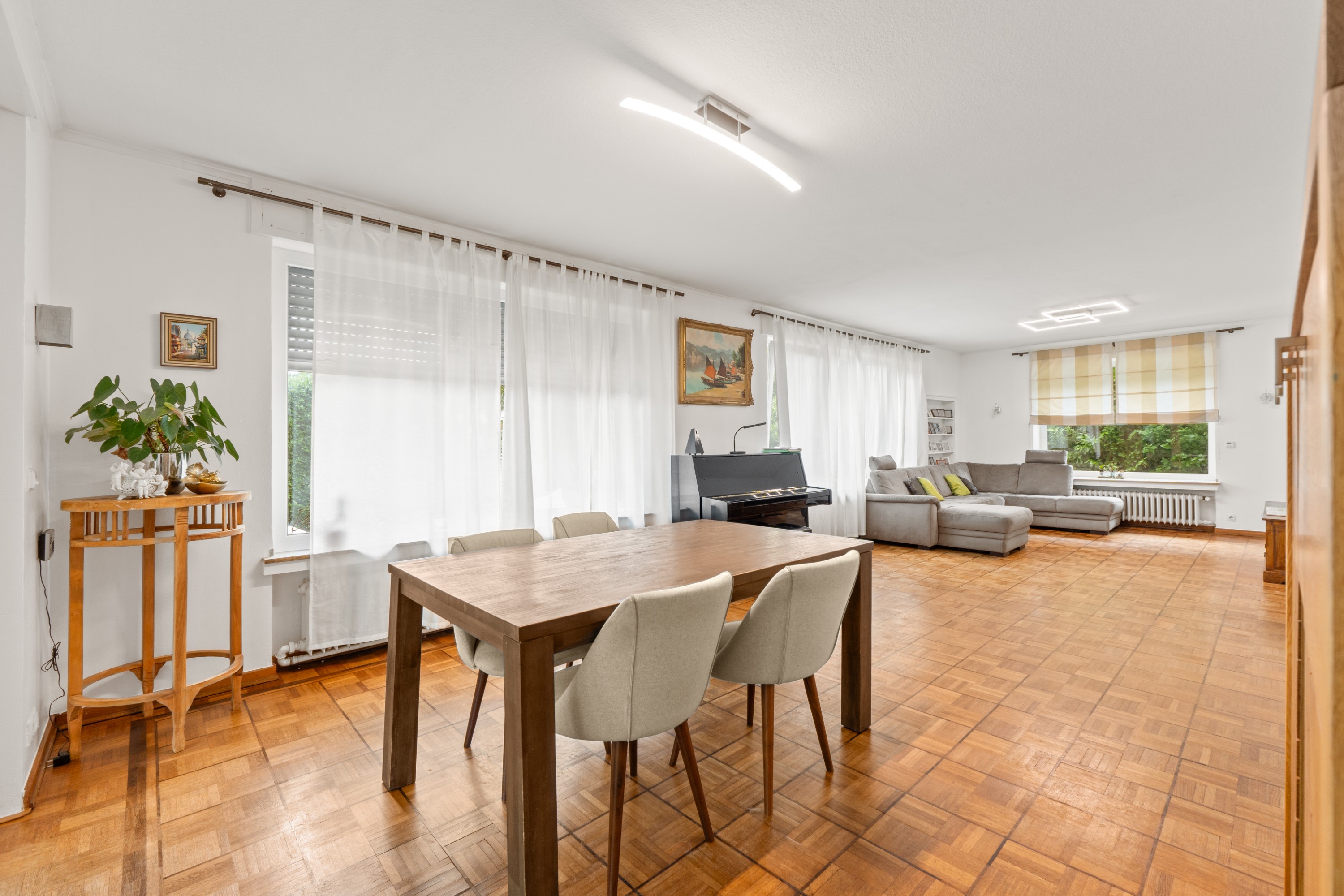 Die großzügigen Räumlichkeiten sind hell und lassen viel Raum für individuelle Gestaltungsmöglichkeiten. Der offene Wohn- und Essbereich lädt zum geselligen Beisammensein ein, während die Schlafzimmer Rückzugsorte der Ruhe und Entspannung bieten.