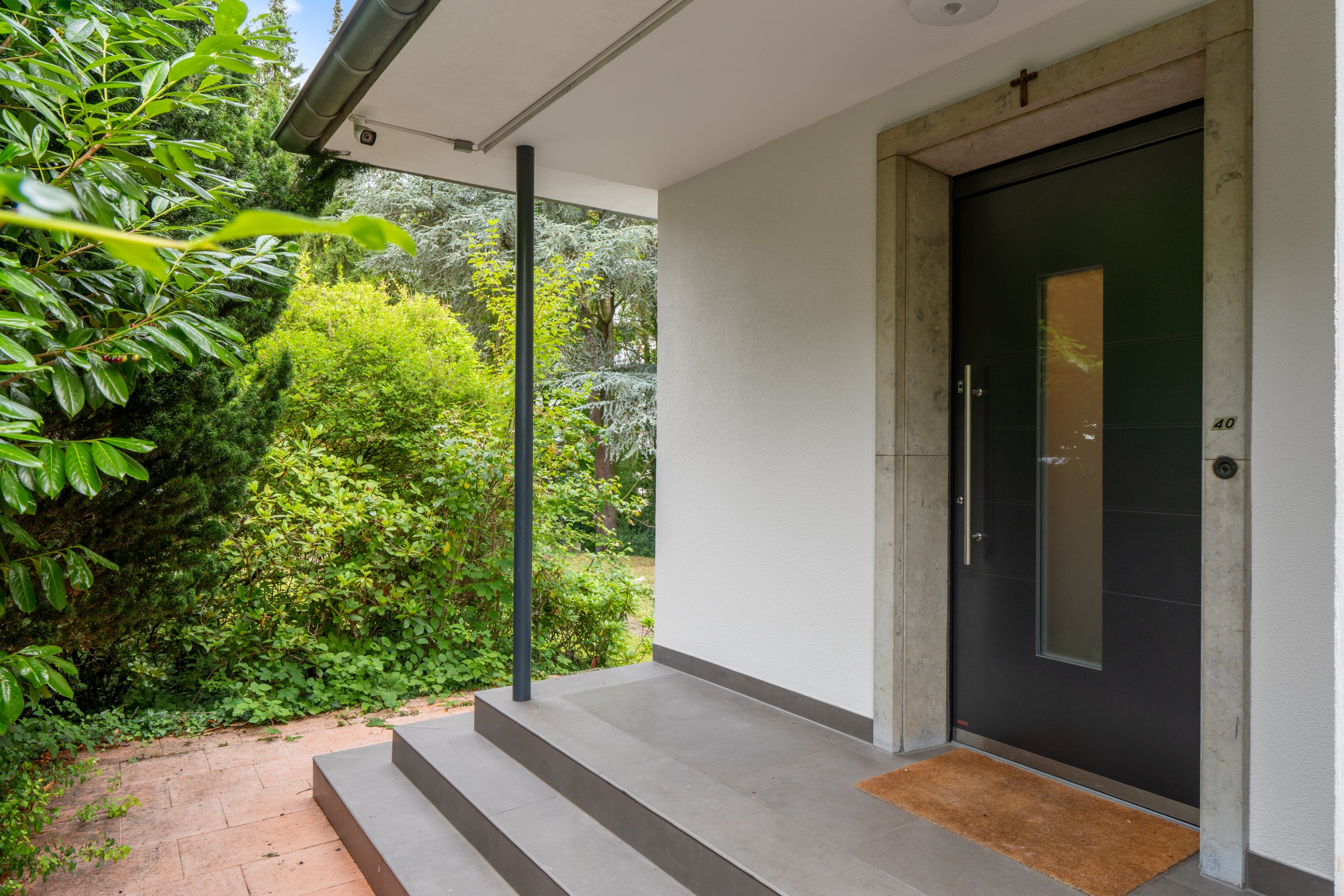 – Juni 2023: Markise, Treppe/Bodenbelag und Geländer der Eingangstür