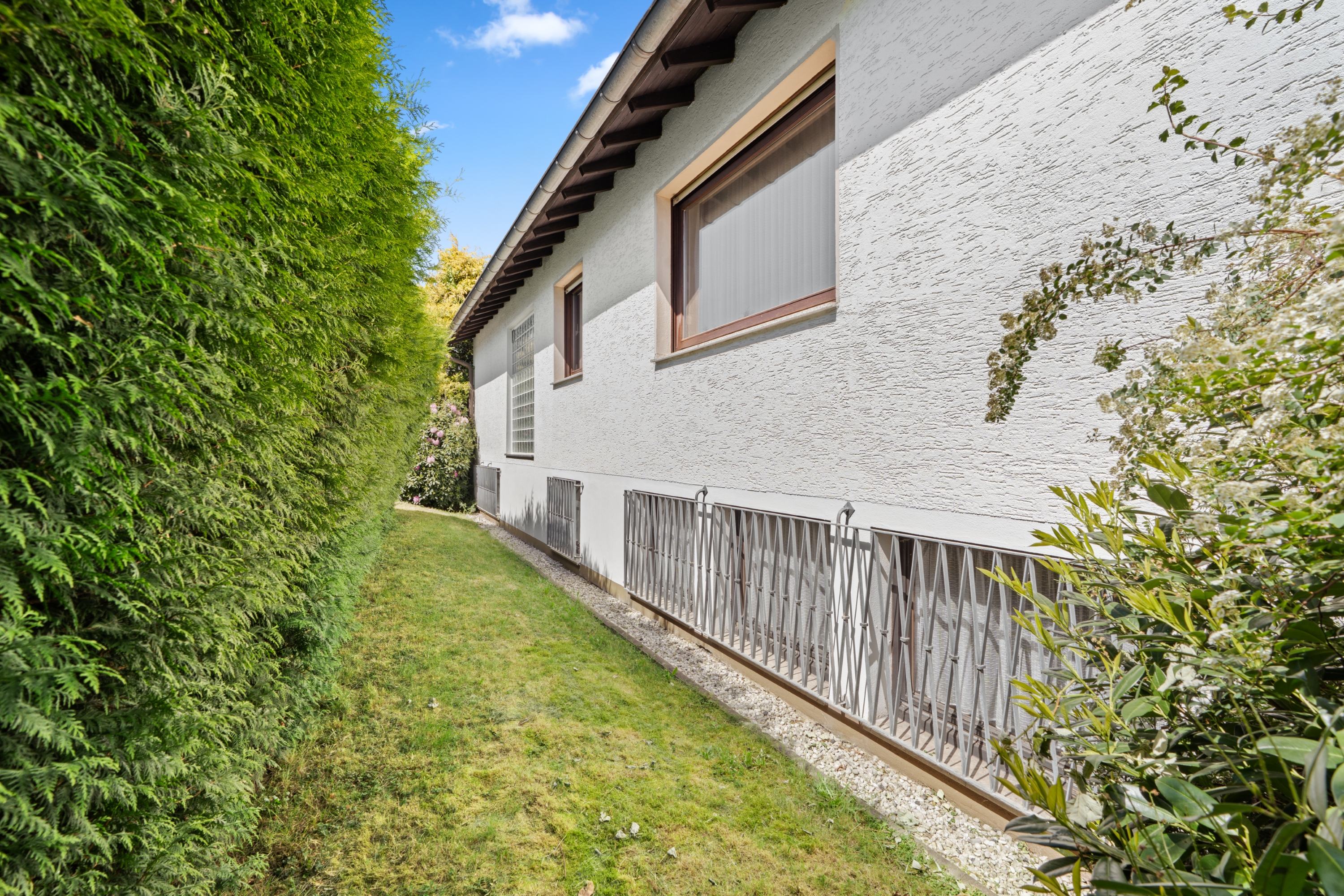 Die rund 186 m² Wohnfläche erstrecken sich über das Erdgeschoss und das helle Souterrain mit großen Tageslichtfenstern.